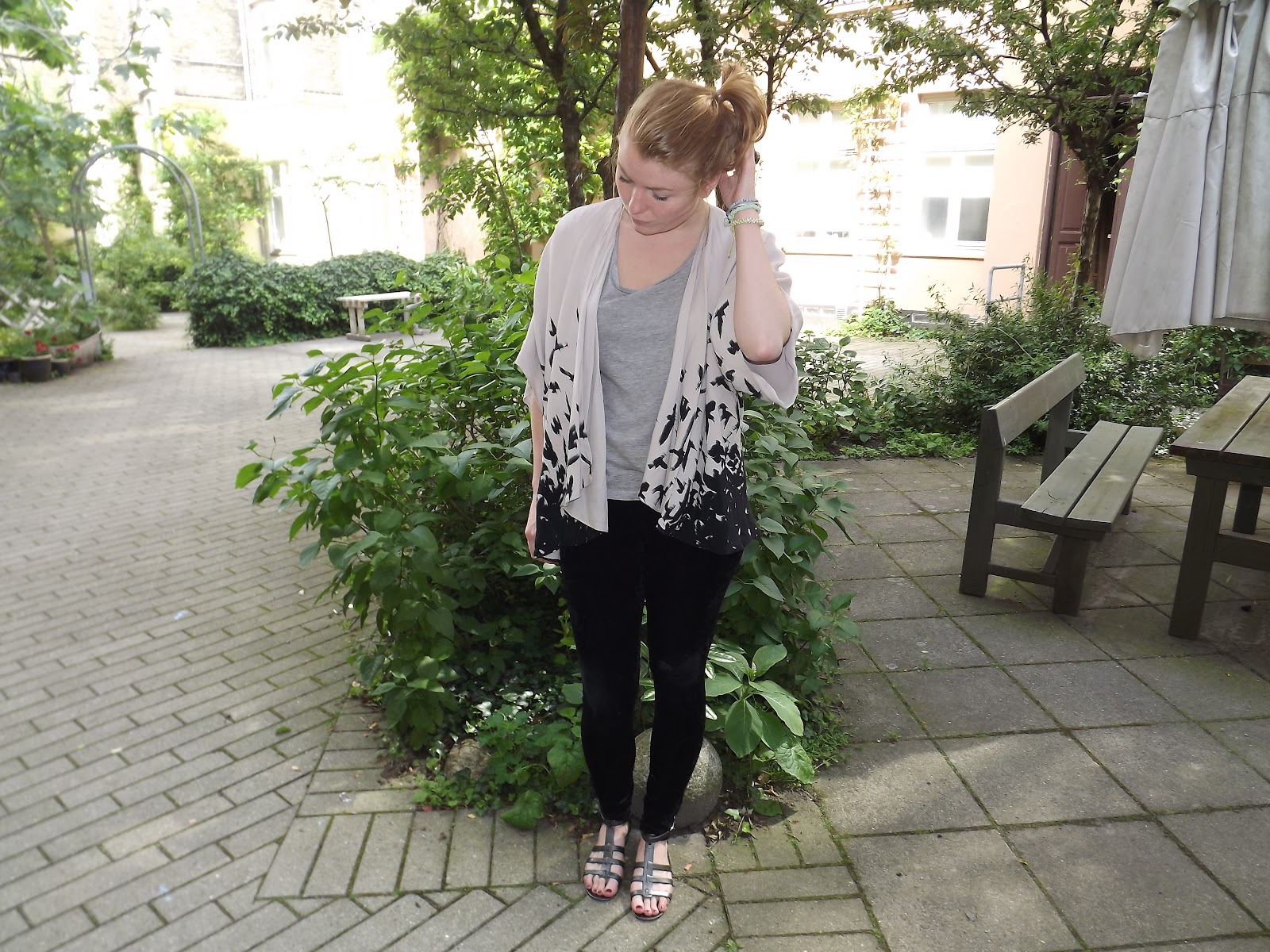 Topshop cardigan / A.O. tee / BikBok leggings / Asos sandals / YSL arty ring / Vintage & H&M; bracelets
