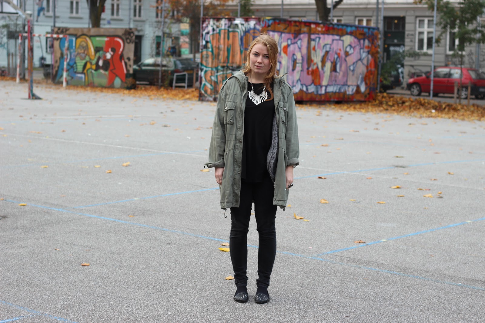 Bik bok parka coat / H&M; knit / Cos shirt / H&M; pants / H&M; necklace / Topshop loafers
