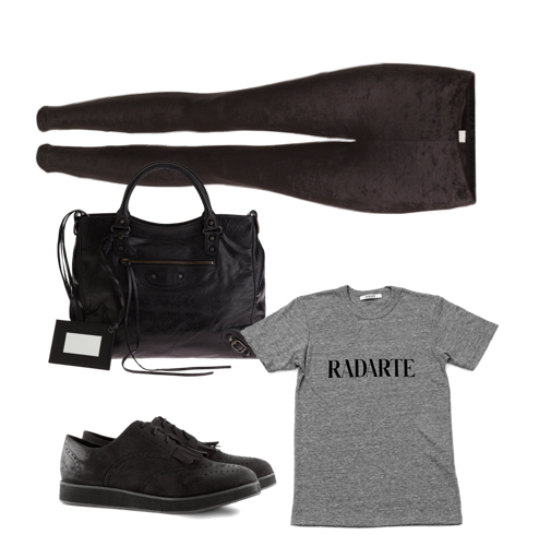 Endnu en dag er gået med arbejde. Det gode ved at have lang “jule”ferie, er at man udover at have tid til at tage en pokkers masse ekstravagter (og dermed også forøge januar-indtægten), så har man også en dejlig masse tid til alle de overspringshandlinger, man ellers normalt har dårlig samvittighed over. Således har jeg her til aften (igen) forsøgt at sortere lidt ud i min garderobe, for at finde lidt at sælge. I min sortering faldt jeg over mine gamle velour leggings, som desværre har været brugt som malerbukser og derfor ikke rigtig tåler dagens lys længere (hvorfor er det jeg altid tror jeg kan male i mit eget tøj uden at få maling på mig?). Men hey, jeg savner dem faktisk, og er derfor nået frem til at velouren skal tilbage i min garderobe. Ja sgu! Jeg vil style dem enten med mine flade sko fra H&M; eller mine Acne Track. Dertil sætte en casual printet tee og en stor taske, og så er jeg good to go.